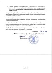 أصدرت وزارة العدل وحقوق الإنسان تعميماً جديداً يقضي بتطبيق صارم لقواعد الحراسة النظرية، حيث حددت مدة التوقيف لدى الشرطة بـ48 ساعة فقط قابلة للتمديد فقط بإذن قضائي صريح.